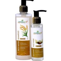 Mihikaarya Rice Water Hair & Face Combo – 250ml Rice Water Shampoo & 100ml Rice Water Face Wash | Nourishing, Strengthening & Cleansing Skincare for Men & Women