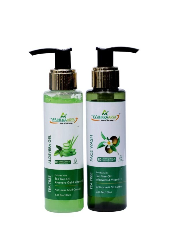 Mihikaarya Tea Tree Face Wash contains potent tea tree oil, known for its antibacterial, anti-inflammatory, and antimicrobial properties. It gently cleanses the skin, removes impurities, unclogs pores, and controls excess oil, leaving the skin feeling refreshed, purified, and revitalized.