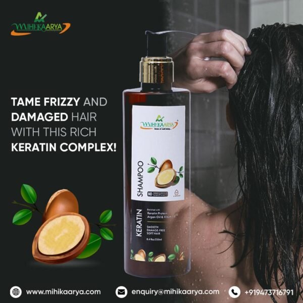 Mihikaarya Keratin shampoo gives your hair strength, elasticity and can withstand both extremely low and high temperatures if you have enough Keratin in your hair. Keratin shampoo smooths cells that overlap to form hair strands, which means more manageable hair and less frizz.