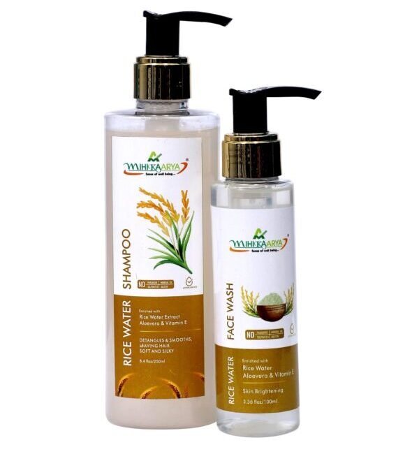Mihikaarya Rice Water Face Wash contains Vitamin E and antioxidants to cleanse, tone, and refresh the skin. It helps brighten the complexion, tighten pores, and soothe sensitive skin, providing a smooth and revitalized appearance.